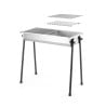 This Barbecue has removable legs. It includes 2 grills, each measuring 345 x 345 mm. It is equipped with a double bottom for clean ash collection.