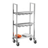 It features a shelf with 2 cutlery trays with a maximum load of 30 kg per level. It is equipped with 4 swivel casters and 2 casters with brakes. This trolley measures L 595 x W 305 x H 1205 mm.