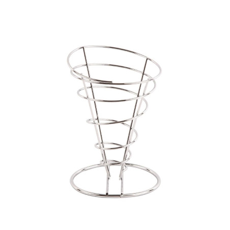 Original stainless steel cone-shaped holder, ideal for serving French fries. Lined with parchment paper (DM177) for a "bistro-gastro" style.