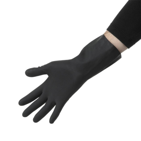 Ideal for professionals in the catering industry, these Latex Cleaning and Maintenance Gloves are made from latex and neoprene. These gloves enhance durability and provide excellent protection against cleaning products or harmful contaminants. This minimizes the risk of your employees' hands being injured, burned, or irritated. As these gloves are designed with reduced thickness and a textured finish, they allow for easy movement, superior tactile sensitivity, and excellent grip, even when wet. They enable cleaning with expert control and precision, thus avoiding the risk of dropping cleaning equipment.