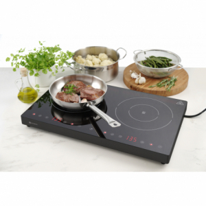 Ideal for catering professionals, this Double Induction Cooktop Black Line has dimensions of L 608 X P 370 X H 61 mm. It connects to 230 V and reaches a power of 3500 W.