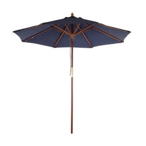 Ideal for professionals in the restaurant and café industry, this Navy Blue Round Parasol made of 100% polyester has a diameter of 2520mm and a height of 2370mm. Featuring a UV and water-resistant fabric with a pulley system. Elegant and very practical for patios, cafes, and other outdoor uses. Easy to open and close. Stand sold separately (CD213).