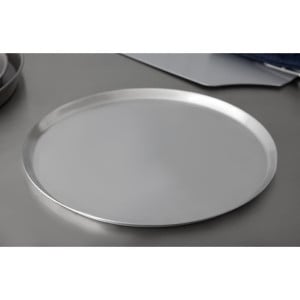 Get delicious large pizzas (30.5 cm in diameter) with this tempered aluminum pan. The design of the pan is ideal for easily baking soft and crispy pizzas. Its aluminum composition allows for even cooking and provides a durable product for repeated use. It is also very easy to clean.