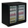 This Black Back Bar with 2 Sliding Doors has a volume of 208 L that can accommodate 180 bottles of 330 ml. With dimensions L 900 x D 900 x H 520 mm, it is made of black painted steel. Sturdy and durable, it is also easy to clean. Additionally, this back bar features two double-glazed sliding doors with automatic closure to maintain the right temperature inside and save energy.