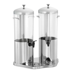 This dispenser can be used to serve different types of beverages such as fresh fruit juices, flavored water, or cocktails, thus facilitating distribution and tasting for guests. Simplify beverage management at your events or services with this DEW5 Duo beverage dispenser from Bartscher.