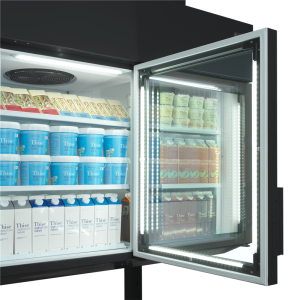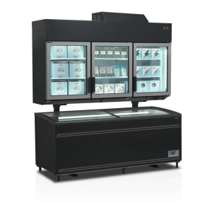 Gain valuable floor space with this brand new MTF model that can function as a refrigerator or freezer. It is ideal for small shops, grocery stores, butcheries, supermarkets, etc. It is equipped with tangential ventilation, allowing it to be placed against a wall without worrying about the temperature. Pair the high MTF refrigerator/freezer with an SFI refrigerated display below for maximum shelving. It offers many possibilities and can be placed against a wall or used as an island. The cabinet is equipped with a fixed lower shelf and two adjustable and tiltable shelves, for better product presentation to customers.