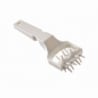 This Polypropylene dough docker roulette has a width of 60 mm with 32 spikes for easily docking your thick doughs. Its dimensions are 210 x 77 mm.