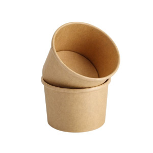 This Kraft Soup Pot is ideal for restaurateurs offering take-out sales. Round in shape, it has a capacity of 240 ml. Thanks to it, you can easily transport different types of liquids such as soups or stews for example. Moreover, it is made of kraft and has a PE lamination for better sealing. This pot is recyclable and eco-friendly.