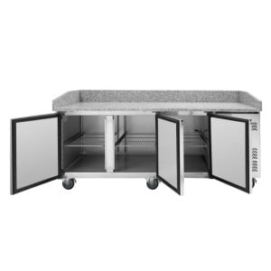 The Dynasteel pizza cabinet is an excellent solution for demanding restaurant professionals who seek both performance and durability. Equipped with three solid doors and entirely made of high-quality stainless steel, this model guarantees unparalleled robustness and exceptional ease of maintenance. Its generous dimensions (2020 mm in length, 800 mm in depth, and 1000 mm in height) offer an optimal internal space of 456 liters, perfect for storing large quantities of ingredients needed for pizza preparation.