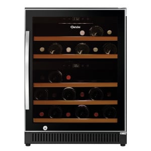 The Bartscher brand has designed a professional wine cellar with two levels perfect for your bar, wine bar, or restaurant. With two temperature control zones, you can set a higher temperature at the bottom than at the top and vice versa. In total, 40 bottles can be stored in this professional wine cellar (14 bottles in the top compartments, 26 bottles in the bottom ones). The two temperature zones are adjustable between 5°C to 20°C.
