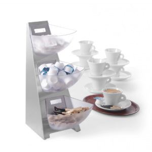 Etagère Multifonctions pour Capsules et sachets idéale pour votre buffet. Support en Inox et 3 bols de 1 L en plastique.