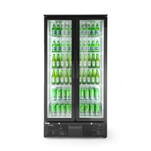 Construction avec peinture poudre, chambre en aluminium estampé, porte verrouillable en plastique vitré avec verre renforcé. Refroidissement par ventilation forcé et dégivrage automatique, le compresseur est placé sous la chambre.