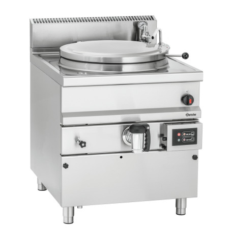 Dispose d'un thermostat de securité avec un réglage thermostatique de la cuisson et contrôle automatique du niveau d'eau dans la double paroi.