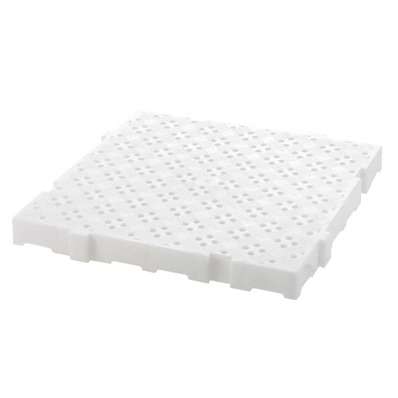 La résistance à la charge de ce produit est impressionnante avec une capacité de 250 kg/m², rendant ce caillebotis adapté même dans les environnements les plus exigeants où le stockage lourd est fréquent. En outre, sa couleur blanche et sa matière plastique PEHD garantissent une résistance optimale contre les variations de température, y compris dans les chambres de surgélation.