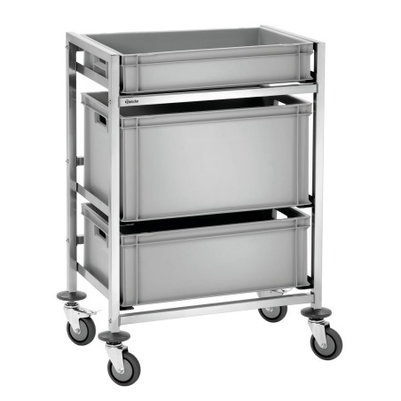 Ce chariot de rangement de caisses en inox est conçu pour les caisses euronormes E1, E2 et E3 de dimension 600 x 400. Cette desserte roulante est idéale pour la boucherie et la boulangerie.