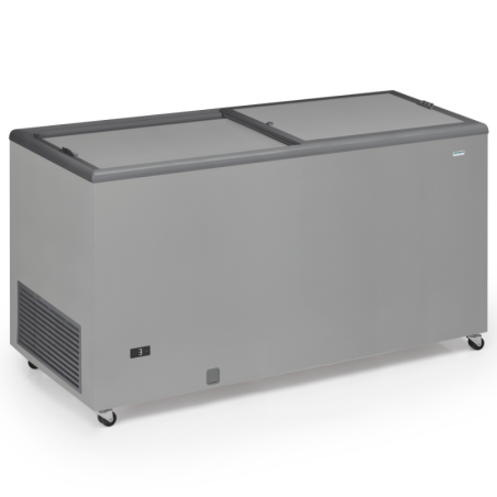 Ce Congélateur Coffre Professionnel Aspect Inox et Couvercle Opaque est idéal pour les professionnels de la restauration. Doté d'une carrosserie à l'aspect inox, il comprend aussi un couvercle coulissant opaque. Il est doté d'un volume de 500 L pour un volume brut de 470 L. De plus, sa plage de température est réglable de -26°C à -12°C.