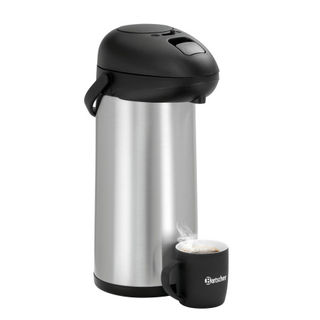Découvrez le Thermos à pompe 5L de la marque Bartscher, un Distributeur Isotherme de qualité pour les professionnels de la cuisine. Avec une Capacité de 5 litres, ce Thermos en Acier Inoxydable est idéal pour maintenir la température de vos boissons chaudes ou froides lors de vos services.