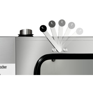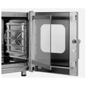 Avec ses dimensions compactes (630 mm de longueur, 730 mm de profondeur et 670 mm de hauteur) et un poids de 58,2 kg, il est parfaitement adapté aux espaces de travail restreints tout en offrant une capacité suffisante grâce à ses cinq niveaux GN 2/3 (354 x 325 mm chacun). Sa plage de température, allant de 50°C à 280°C, permet une grande diversité de cuissons, de la basse température aux cuissons intenses.