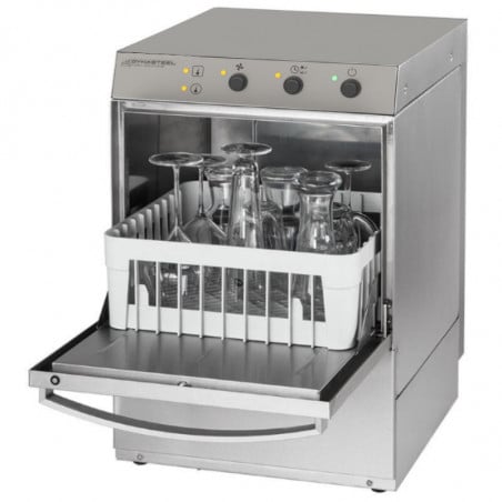 Ce Lave-Verre Professionnel avec Doseur de Liquide de Rinçage et Détergent est spécialement conçu pour les professionnels de la restauration. Doté d'une fonction de désinfection, il convient au lavage de la verrerie, des couverts mais aussi des petites assiettes. De plus, il est particulièrement simple d'utilisation, notamment grâce à son système de contrôle électromécanique. Il comprend également l'affichage de la température de fonctionnement.