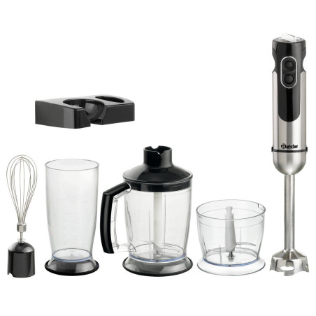 Ce Kit Mixeur Plongeant est très complet et vous permettra d'émulsionner, de mixer, d'écraser en purée, de fouetter, de mélanger, de battre et de couper en morceaux vos ingrédients.