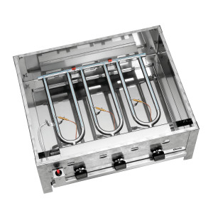Ce grill de table d'extérieur à gaz est l'équipement idéal pour les professionnels cherchant à optimiser leurs espaces extérieurs pour les repas. Offrant une puissance de 10000 watts et une surface de chauffe répartie sur trois zones, ce modèle assure une cuisson précise et rapide, adaptée à un usage intensif durant les services en terrasse.