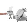 Réservée à une utilisation professionnelle, elle convient particulièrement à la découpe de grosses pièces de charcuterie et de fromage. Elle possède une lame en aluminium chromée très résistante d'un diamètre de 300 mm. Par ailleurs, elle dispose d'une longueur de coupe de 250 mm avec une hauteur de coupe de 220 mm.