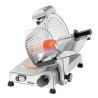 Avec un moteur robuste alimenté par 230 V et une puissance de 130 W, cette machine offre une performance optimale tout en maintenant l'efficacité énergétique. Le diamètre de coupe de 250 mm permet de traiter efficacement divers types de charcuteries, tout en garantissant une découpe précise grâce à la possibilité de régler l'épaisseur de 1 à 12 mm. La trancheuse est également munie d’un système de commande manuelle via une manette qui simplifie son opération tout en offrant une fiabilité maximale.