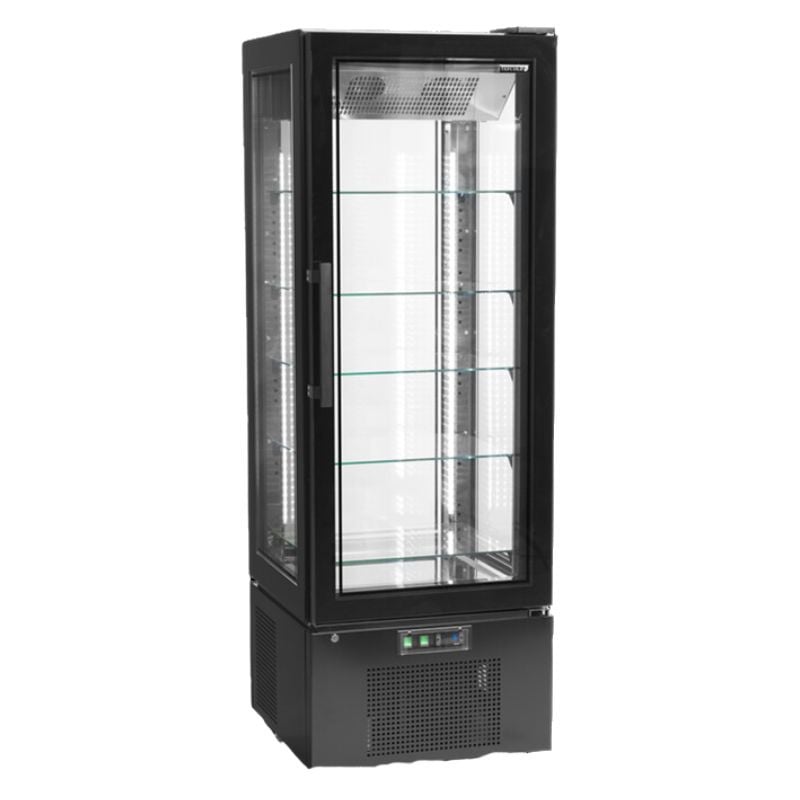 Grâce à son double vitrage sur les quatre faces et sa porte vitrée sans cadre, l'UPDC400-C offre une visibilité optimale de vos gâteaux, desserts et autres créations pâtissières. Sa finition noire en acier à l'extérieur et en acier inoxydable avec effet miroir à l'intérieur lui confère une esthétique raffinée.
