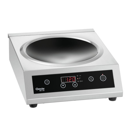 Ce wok à induction en acier inoxydable possède un panneau de contrôle tactile avec affichage digital, minuterie et 10 niveaux de réglage de température. La température est réglable entre 60 et 240°C avec une protection électronique anti-surchauffe.
