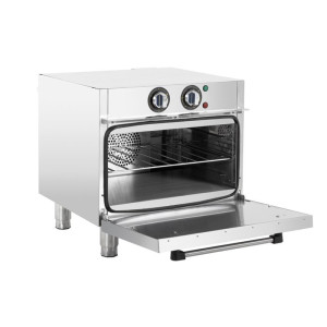Intuitivan dizajn pećnice olakšava njezinu integraciju ispod pulta, čime se oslobađa prostor za drugu esencijalnu opremu. Njene praktične dimenzije od 600 mm duljine, 550 mm dubine i 610 mm visine osiguravaju jednostavnu instalaciju bez žrtvovanja unutarnjeg kapaciteta. Sposobna primiti do tri GN 1/1 pladnja, ovaj model je idealan za pripremu velikih količina hrane zahvaljujući ravnomjernoj distribuciji topline koju osigurava sustav asistirane ventilacije.