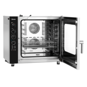 Sa svojom robusnom konstrukcijom od nehrđajućeg čelika 18/10, ova pećnica ne nudi samo povećanu otpornost i trajnost, već se njen elegantan dizajn i vanjska završna obrada od nehrđajućeg čelika savršeno uklapaju u svaku modernu profesionalnu kuhinju. Unutarnje osvjetljenje i vrata na preklop olakšavaju praćenje i rukovanje jelima, čime se povećava operativna učinkovitost.
