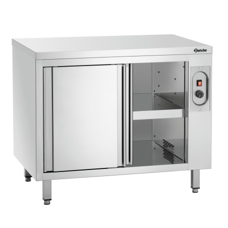 Grijani ormar 700, L1000 marke Bartscher, idealan za profesionalne kuhare. Ovaj grijani ormar od nehrđajućeg čelika sa Scotch-Brite završnom obradom i rubovima od 40 mm opremljen je kliznim vratima i međupolicom, pružajući veliki kapacitet za pohranu kako bi vaša jela ostala topla na idealnoj temperaturi.