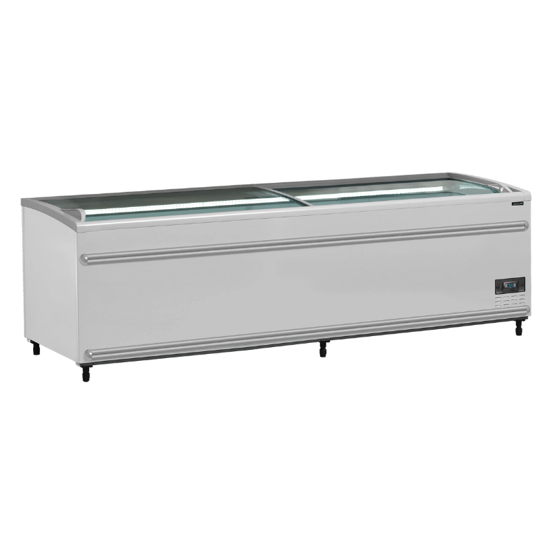 Otkrijte naš Hladnjak Zamrzivač s 2 Poklopca Zakrivljeno Staklo Crni marke TEFCOLD, idealan za profesionalce u kuhinji. S kapacitetom od 1255 L, ovaj hladnjak je savršeno prilagođen za supermarkete i ustanove kolektivne prehrane. Njegova crna lakirana završna obrada daje mu moderan i elegantan dizajn.