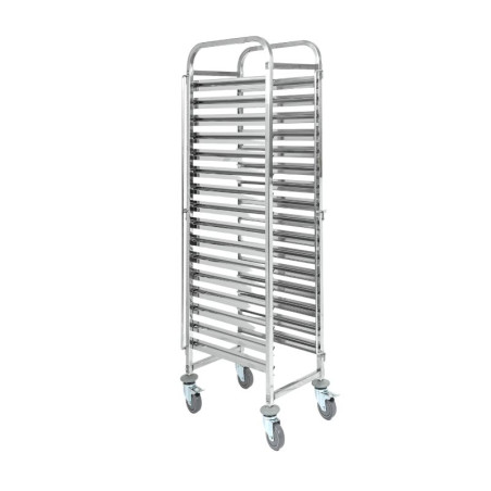 Idealno za profesionalce u ugostiteljstvu poput pekara i slastičarnica, ova inox Patisserie ljestve 16 razina posebno su dizajnirane za prihvat ploča i rešetki veličine 600 x 400 mm. Izrađene od nehrđajućeg čelika, čvrste su i trajne. Za bolju sigurnost ploča, opremljene su zaustavljačem. Također, imaju 4 okretna kotača od kojih su 2 s kočnicama kako bi se olakšalo premještanje. S 16 razina omogućuju vam pohranu i prijevoz mnogih ploča, maksimizirajući tako vašu proizvodnju.