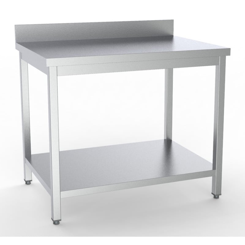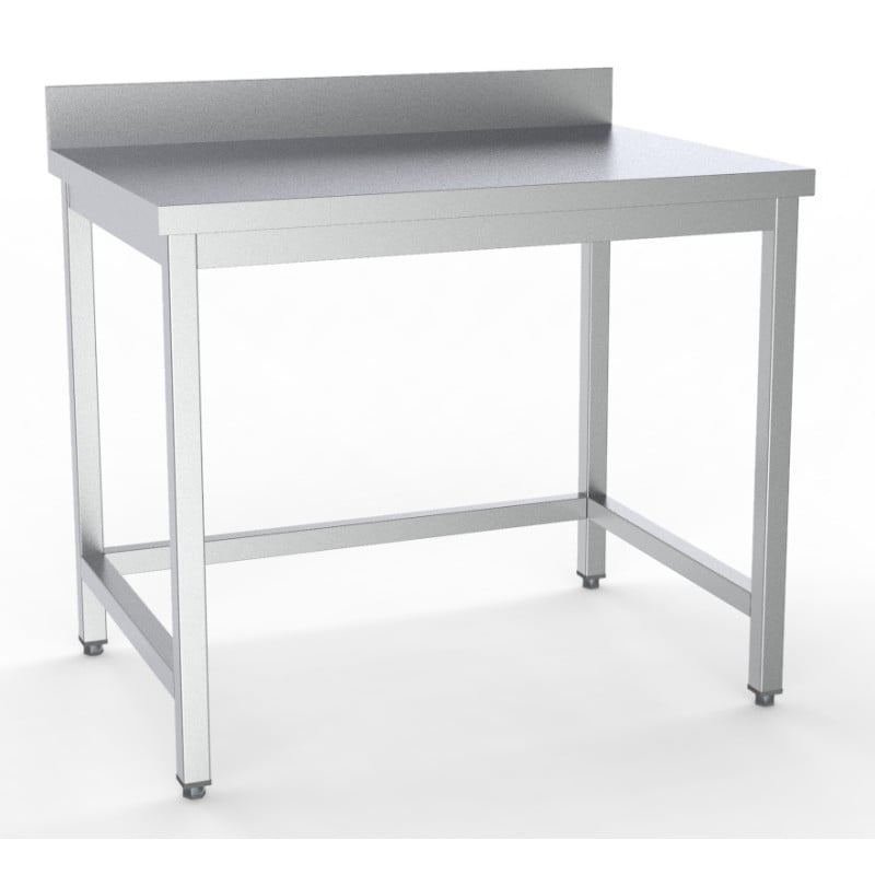 Četvrtaste noge dimenzija 40 x 40 mm opremljene podesivim vijcima od 50 mm osiguravaju stabilnost i prilagodljivu visinu. Scotch-Brite završna obrada nehrđajućeg čelika daje ovom stolu estetski izgled i olakšava njegovo održavanje. Osim toga, rub od 40 mm i stol zavaren u jednom komadu jamče besprijekornu higijenu.