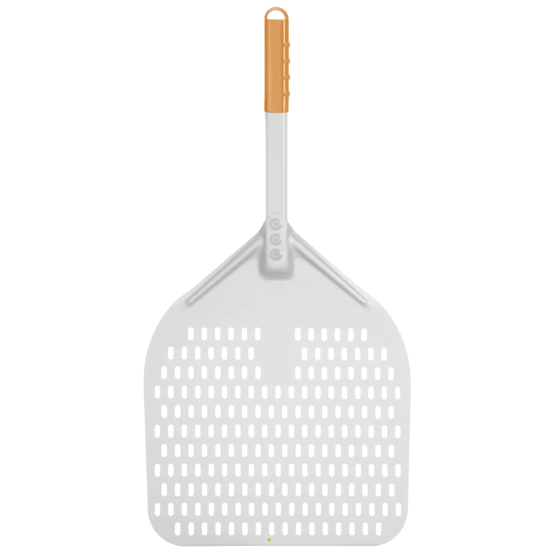 Performanse susreću eleganciju u ovom neophodnom alatu za svakog profesionalca u ugostiteljstvu. Izrađena od anodiziranog aluminija, ova četvrtasta perforirana lopatica za pizzu spaja lakoću i izdržljivost. Zahvaljujući svojoj aluminijskoj strukturi, odolijeva najzahtjevnijim uvjetima u kuhinji, a istovremeno je jednostavna za rukovanje. Prisutnost perforacija posebno je dizajnirana za uklanjanje viška brašna, što osigurava da svaka pizza bude savršena kako je i predviđeno kada stigne na stol klijenta.