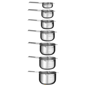 Ovaj set od 7 mjerica nudi raspon veličina, od 30 ml do 240 ml, omogućujući precizno mjerenje za mnoštvo recepata. Zahvaljujući svom robusnom i praktičnom dizajnu, ove mjerice su mudra investicija za profesionalce koji žele optimizirati svoju učinkovitost u kuhinji, a istovremeno osigurati preciznost u pripremi svojih jela.