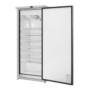 Negativni rashladni ormar s ventiliranim hlađenjem od 600 litara s inox završnom obradom. Otvaranje vrata je reverzibilno.
