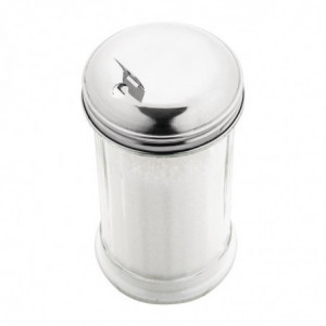 Ova posipaljka s bočnim otvorom dolazi od marke Olympia. Ima stakleni spremnik i poklopac od nehrđajućeg čelika s bočnim otvorom i poklopcem za doziranje željene količine šećera: idealna za kavu, dimenzije su 140 (V) x 70 (Ø) mm.