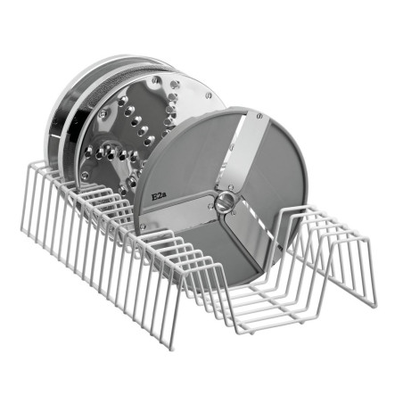 S kapacitetom pohrane od 10 do 18 diskova, ovisno o odabranoj verziji, ova podrška vam omogućuje učinkovito organiziranje vašeg radnog prostora i držanje diskova na dohvat ruke. Prilagođena za diskove rezača povrća GMS550 i GMS600, osigurava savršenu kompatibilnost s ovim modelima.