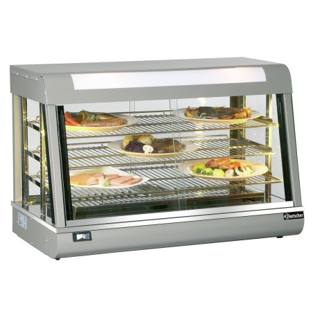Ova profesionalna vitrina za održavanje topline idealna je za prezentaciju vaših toplih jela. Naime, njezine 3 međuspremne police su podesive po visini. Osim toga, njezvo unutarnje osvjetljenje je zasebno prekidačem, kako bi se najbolje prilagodilo vašim potrebama prezentacije.