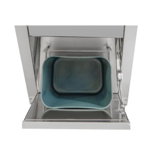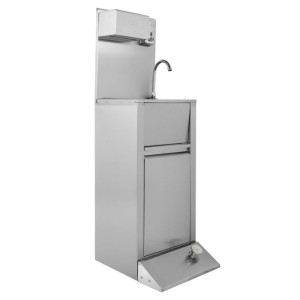 Ovaj umivaonik na nožnu komandu s kantom za smeće, dozatorom sapuna i papira predstavlja higijensko i praktično rješenje za sve profesionalne ugostiteljske objekte. Izrađen od inoxa AISI 304, ovaj model osigurava izdržljivost i otpornost, čineći ga idealnim za zahtjevna okruženja profesionalne kuhinje.