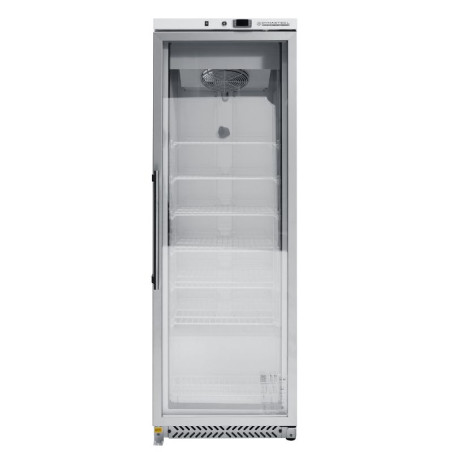 Negativni rashladni ormar s ventiliranim hlađenjem od 400 litara s bijelim lakiranim završetkom i staklenim vratima idealan za sve profesionalce u ugostiteljstvu.